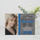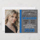 Blue & Black Modern Chalkboard Graduation Photo Invitation.