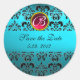 BLUE BLACK DAMASK MONOGRAM ,red ruby turquase Classic Round Sticker