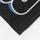 Fun dog blanket personalised with a word cloud of your dog's name and initial in blue, black, and white and lots of little paw prints and dog bones. A great gift for your boy dog so he can snuggle up with a blanket bearing his name over and over in a fun typography word art design.