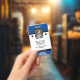 Blue, black and white emotional support animal / service dog ID (identification badge). Customise it by adding a photo of your animal and registration information.