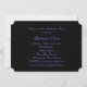 Floral designs surrounding button on top of a blue ribbon that has floral designs. Black cloudy background. The back of the card has a black background with blue lettering for the graduation party invitations.