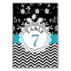 Blue and black chevron stripes and modern floral pattern Wedding Table Number Card