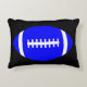 Blue & Black Football Player or Fan Throw Pillow: An original and realistic football graphic design with blue skin. These make great bedroom or game room decorations for football players, coaches and fans with blue team colours. Click the [Customise] button to add your own custom text on top, like a jersey number or name!