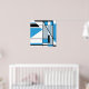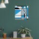 Blue Black Gray on White Abstract Mosaic-like Look Poster