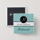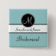 Blue Black Monogram Bridesmaid Button. Elke Clarke© Fully customisable.Personalise and change the background colour to match your wedding.