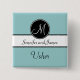 Blue Black Monogram Usher Wedding Button. Elke Clarke© Fully customisable. Personalise and change the background colour to match your wedding.