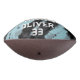 Blue Black Player Name Number Photo Keepsake Football. Watercolor background texture in blue and black colours. Personalise it with your player number, name and photo. A great personalised football keepsake to remember the favourite sport.