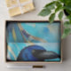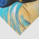 Large Blue black Raven on a abstract swirled blue and gold background