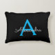 Blue Black Script Girly Monogram Name Decorative Cushion