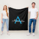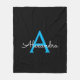 Blue Black Script Girly Monogram Name Fleece Blanket