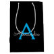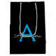 Blue Black Script Girly Monogram Name Medium Gift Bag