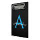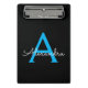 Blue Black Script Girly Monogram Name Mini Clipboard