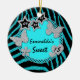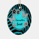 Commemorate your daughter's Sweet 15th or 16th birthday party with this chic and trendy customisable ceramic Quinceanera photo Christmas ornament. It has aqua blue FAUX glitter (PRINTED) and black zebra print animal stripes with a polka dots pattern and silver FAUX glitter (PRINTED) butterflies, stars, hearts, and a funky flower on it, with text boxes to add a name, and the date of your sweet 15th, sweet 16, Bat Mitzvah, or other special date to the front side and a spot for you to upload a photo into on the back. It can be changed to say your name, or other text. Everything will print as you see it on your monitor, so if you need help customising your text, please email niteowlstudio@gmail.com BEFORE you ord pink and black polka dot ornament. The text is fully customisable so you can change it to whatever you want.
