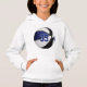 This custom basketball team colours hoodie features the realistic image of a basketball that has alternating blue, white and black recolored panels upon which you can personalise the athlete's jersey number - by katz_d_zynes