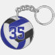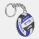 This team colours volleyball themed keychain for girls or boys features the realistic image of a volleyball that has blue, black and white panels, upon which you can customise the player's name and court position, plus school or club name and mascot name on the front and jersey number on the back - by katz_d_zynes