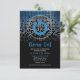 Blue, black, and grey (grey) raining pixel gamer or video game Bar Mitzvah reception party insert card.