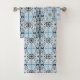 Blue Black White Curly Abstract Repeat Pattern Bath Towel Set