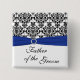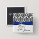 This black and white damask with a PRINTED royal blue ribbon and jewel buckle Father of the Groom button matches the wedding invitation shown below. The text is customisable and so is the shape and size of the button. ****PLEASE note that if you change the shape to the round button that text may get cut off. It will print as it appears on your monitor, and you must allow addequate space around the edges. If you need anything changed, please email niteowlstudio@gmail.com.