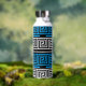 Blue Black White Greek Key Fret Pattern Design Water Bottle
