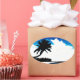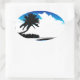 Blue Black White palm Tree Silhouette Oval Sticker