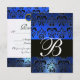 BLUE BLACK WHITE SAPPHIRE DAMASK MONOGRAM RSVP CARD