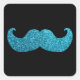 Blue Bling moustache (Faux Glitter Graphic) Square Sticker