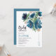 A boho dusty blue and dark navy blue boho floral watercolor bridal shower with pretty hand painted flowers in and blooms with greenery foliage. A pretty garden party bridal shower.