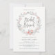 This simple and stylish bridal brunch invitation features a sweet watercolor boho wreath, with trendy pink and blue flowers and modern typography.