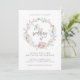 This simple and stylish wedding invitation features a sweet watercolor boho wreath, with trendy pink and blue flowers and modern typography.