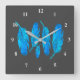 Pretty blue boho feather design of blue watercolor feathers against a dark gray background. Beautiful deep blue design with a boho vibe.