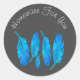 Blue boho feathers blue and grey classic round sticker