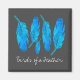Blue boho feathers blue and grey magnet