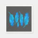 Pretty blue boho feather design of blue watercolor feathers against a dark grey background. Beautiful deep blue design with a boho vibe.