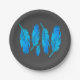 Pretty blue boho feather design of blue watercolor feathers against a dark grey background. Beautiful deep blue design with a boho vibe.