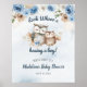Blue Boho Floral Owl Boy Baby Shower Welcome Sign