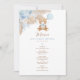 Blue Boho Teddy Bear Balloon Baby Shower Menu Card