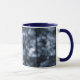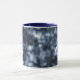 Stylish ringer mug features an abstract cyanotype with a lovely mix of light to dark blue overlapping translucent circles. "Bokeh" is a Japanese word which describes a pleasing pattern in the out-of-focus areas of a photograph. The dots are referred to as "circles of confusion" in photography.