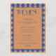 Add a splash of bold personality to your wedding reception with this blue and mustard menu card featuring a retro chequerboard design. The striking colour combo, paired with playful yet elegant fonts, brings a modern twist to vintage vibes – perfect for couples who love a unique and lively look. 💙 Deep blue chequerboard border with a warm mustard centre 🧾 Retro-inspired typography with clearly labelled sections 🍽️ Includes starter, main course, dessert, and drinks layout ✏️ Fully customisable to match your menu 🎉 Great for funky, retro, indie, or mid-century modern themed weddings The perfect mix of charm and style to wow your guests and complete your table setting.