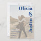 A modern, simple bold and elegant wedding invitation with bold oversize font in boho blue and white, with a white overlay and 2 photos, add your QR code for rsvp , wedding details and more. All the text, names and background colours are customisable. A simple and minimalist invitation.