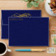 Add an embellished touch to your wedding invitations with this personalised book themed wedding envelope. The outside features an image of blue book cloth. Golden coloured text classic type presents your address on the front. The back flap of this bookish envelope presents your names accented by an elegant flowing flourish.