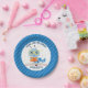 Blue Bookworm Theme Paper Plate - Some people take to books immediately and never look back. Others grow into their love of books after reading that special book that changes everything. Presenting a very charming paper plate design of a little blue bookworm reading his book. Perfect for bookworm baby showers and bookworm birthday parties.