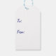 Blue boomerangs gift tag. Background colour and text can be customised.