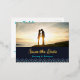Save the date postcard with space for photo and has an elegant blue background. Customise.