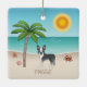 Blue Boston Terrier At A Tropical Summer Beach Ceramic Ornament