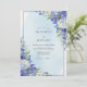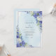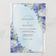This design features a serene watercolor wash in soft blues, accented by a cascade of vibrant blue and white blossoms. Delicate greenery intertwines with lush floral clusters, creating an elegant and romantic atmosphere. The palette evokes a tranquil yet joyful mood.