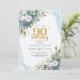 Blue Botanical Gold Frame 90th Birthday Invite