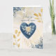 Blue Botanical Heart with Gold Script Accents Holiday Card