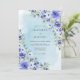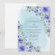 Delicate washes of light blue form a soft backdrop for vibrant periwinkle and deep violet blooms. Lush greenery entwines with painterly petals, creating an ethereal and romantic atmosphere. This design evokes a feeling of serene elegance, perfect for a sophisticated affair.