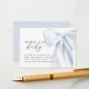 Invite guests to contribute to your baby’s library with this Blue Bow Baby Shower Books for Baby Enclosure Card. Featuring a delicate light blue bow and elegant script, this card is a sweet and charming way to request books instead of cards for your little one.