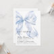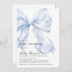 Celebrate the arrival of your little one in timeless style with this Elegant Blue Coquette Bow Baby Shower Invitation. Featuring soft blue tones, delicate bows, and a romantic coquette aesthetic, this design perfectly captures feminine charm and sophistication. Ideal for the modern mom-to-be who loves all things pretty and polished — from satin ribbons to vintage-inspired elegance.